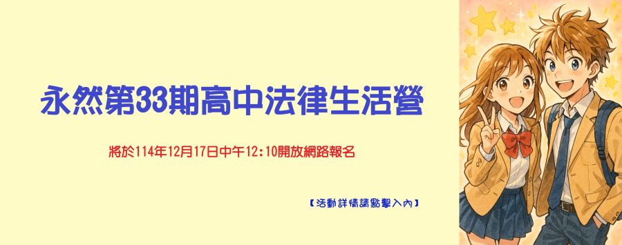 永然第32期高中法律生活營 錄取名單公布