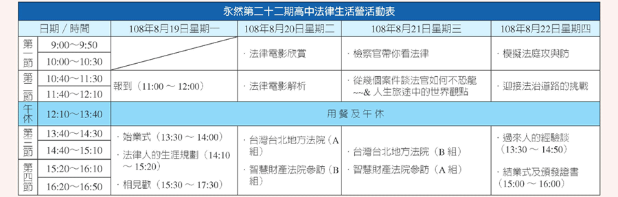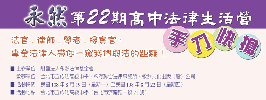 感謝大家的熱烈支持,永然第22期高中法律生活營已報名額滿
